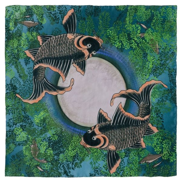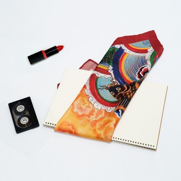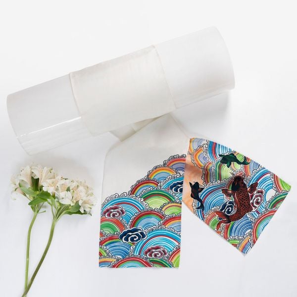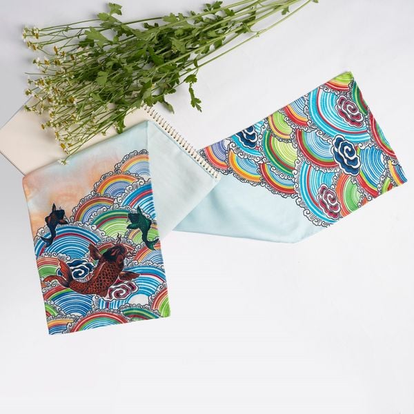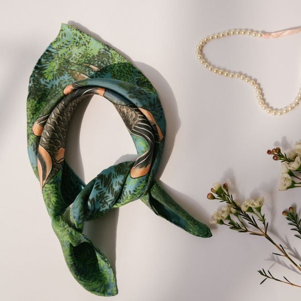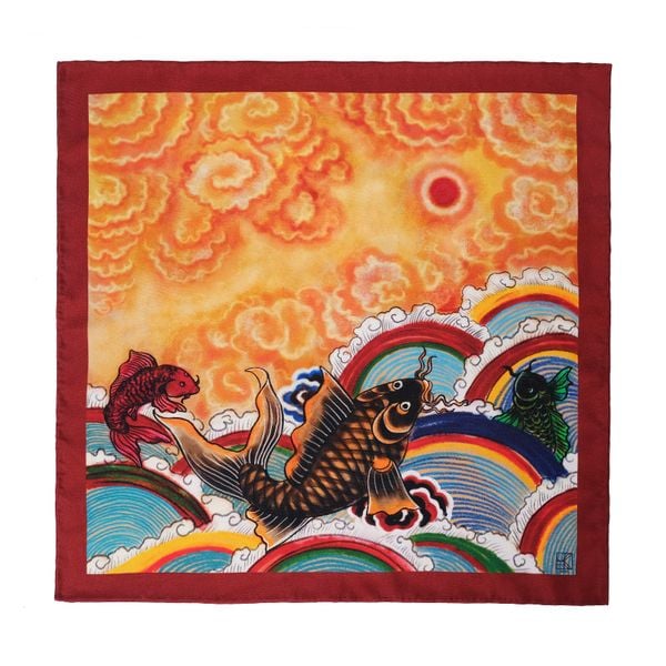 The Duyên scarf inspired by the wave patterns of Vietnamese folk paintings.